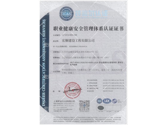 職業健康安全管理體系證書
